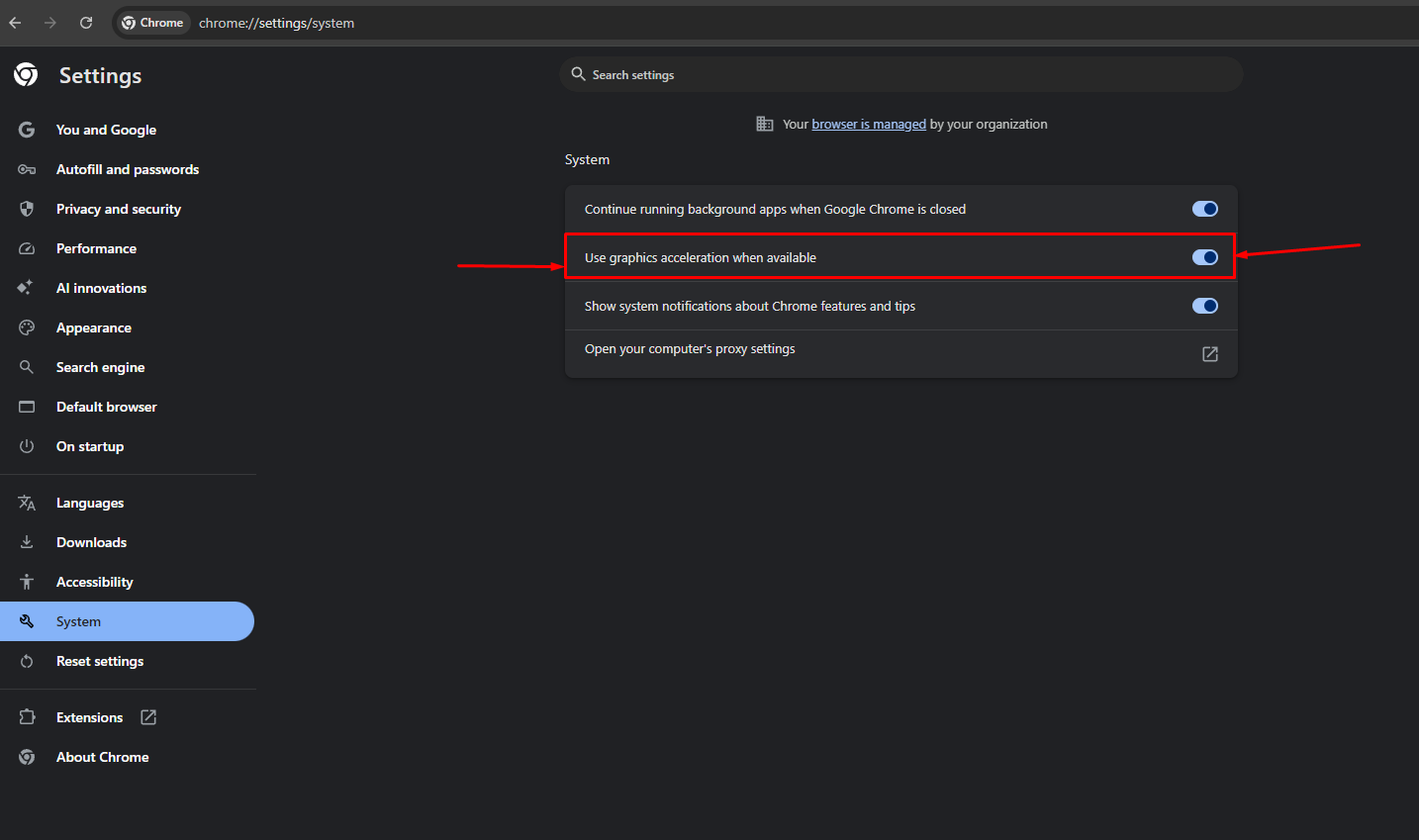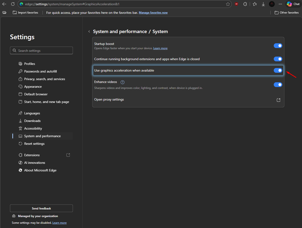 4. Turn On option Use graphics acceleration when available to complete setup. Click Restart to activate new settings